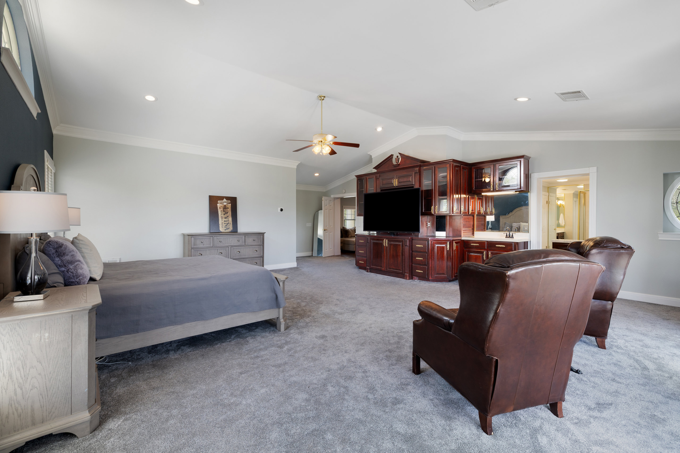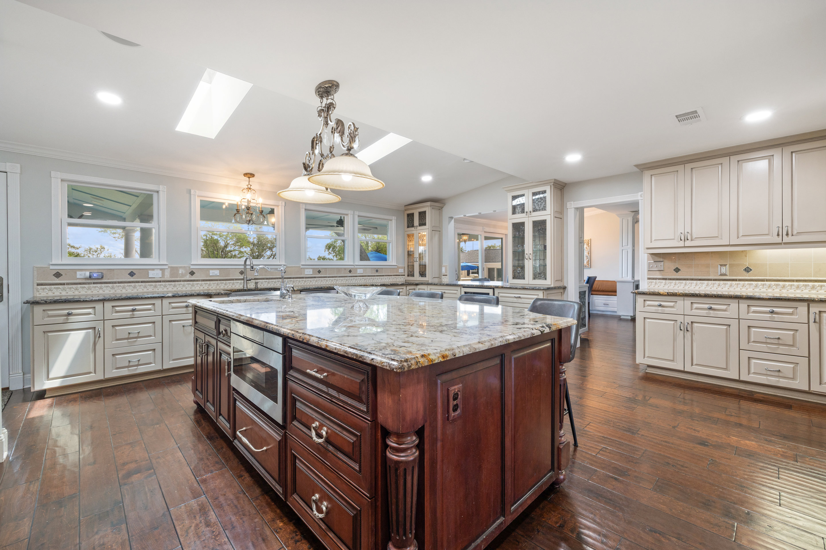Spacious guest bedrooms offer comfort and privacy, while the outdoor space is built for entertaining: a large covered patio, sparkling pool, outdoor kitchen with built-in grill, fireplace, and integrated sound system. A detached, climate-controlled office offers a quiet workspace, while the two-car garage with epoxy flooring is ideal for a gym, second office, or workshop.