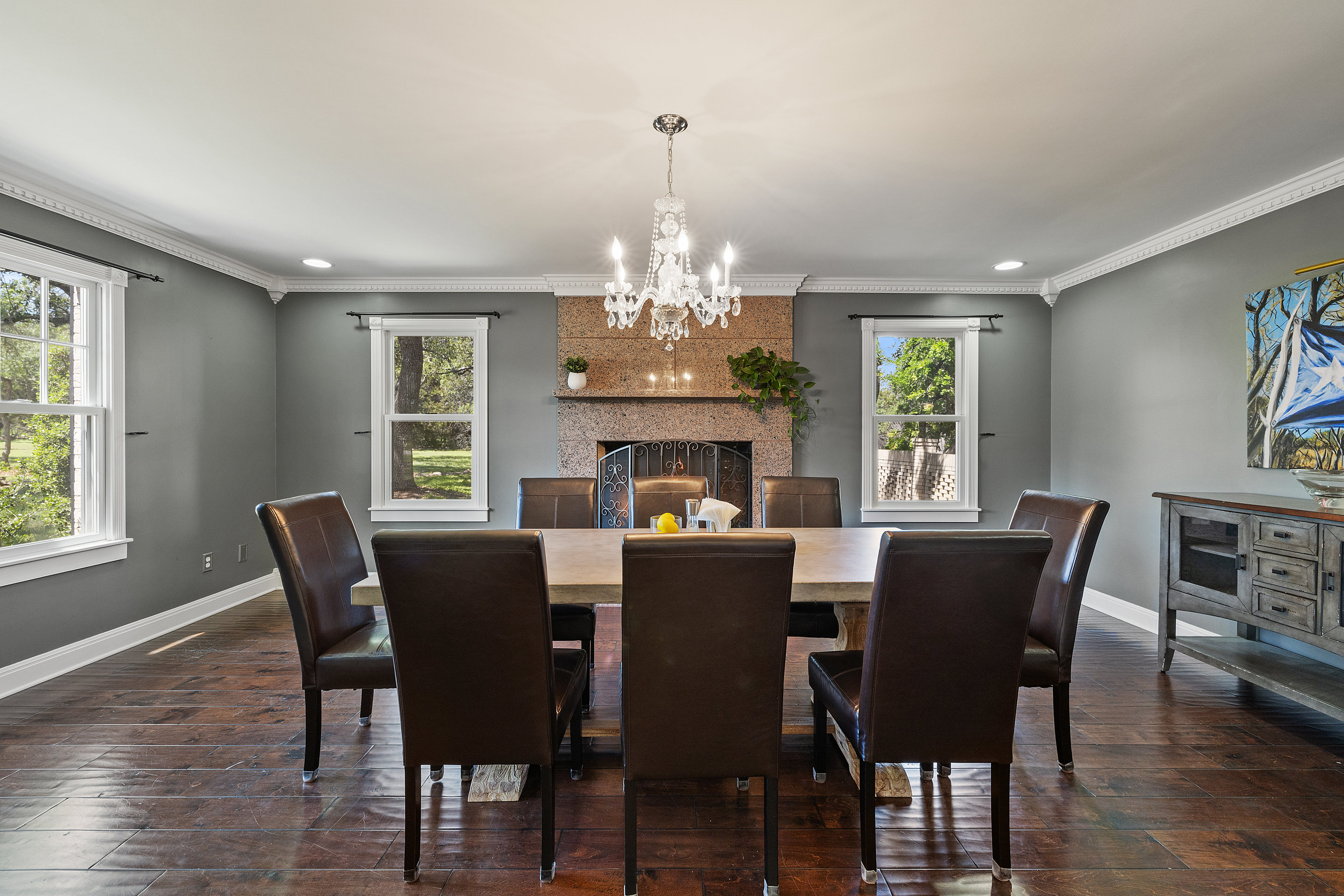 The gourmet kitchen is a chef’s dream with high-end appliances, granite countertops, and custom cabinetry, flowing seamlessly into a spacious living area anchored by a striking brick fireplace. Additional highlights include skylights, surround sound, a formal dining room with its own fireplace, a butler’s pantry, and a wine refrigerator. The primary suite is a true sanctuary with a spa-like bathroom, terrace access, and a private spiral staircase.